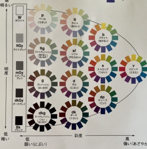 • グレーが混ざったトーンがストロング、ソフト、ダル、ライトグレイッシュ、グレイッシュ。