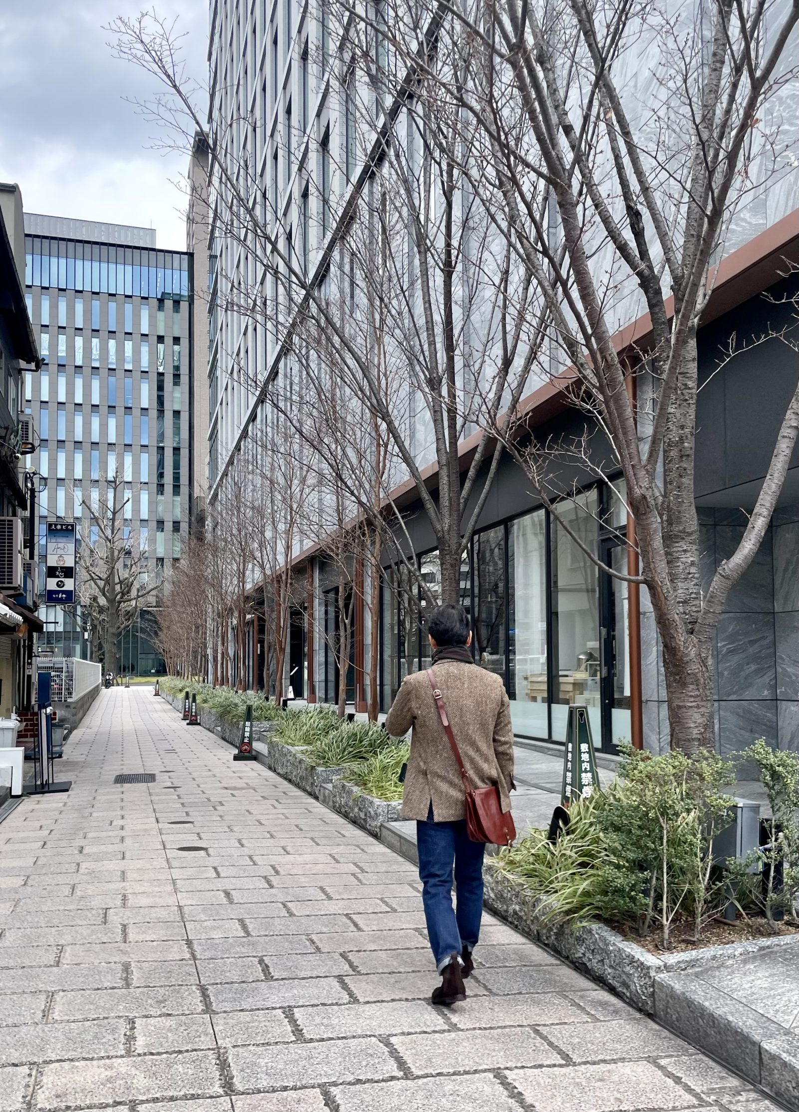 ・ツイードとブラウンで落ち着きを出す