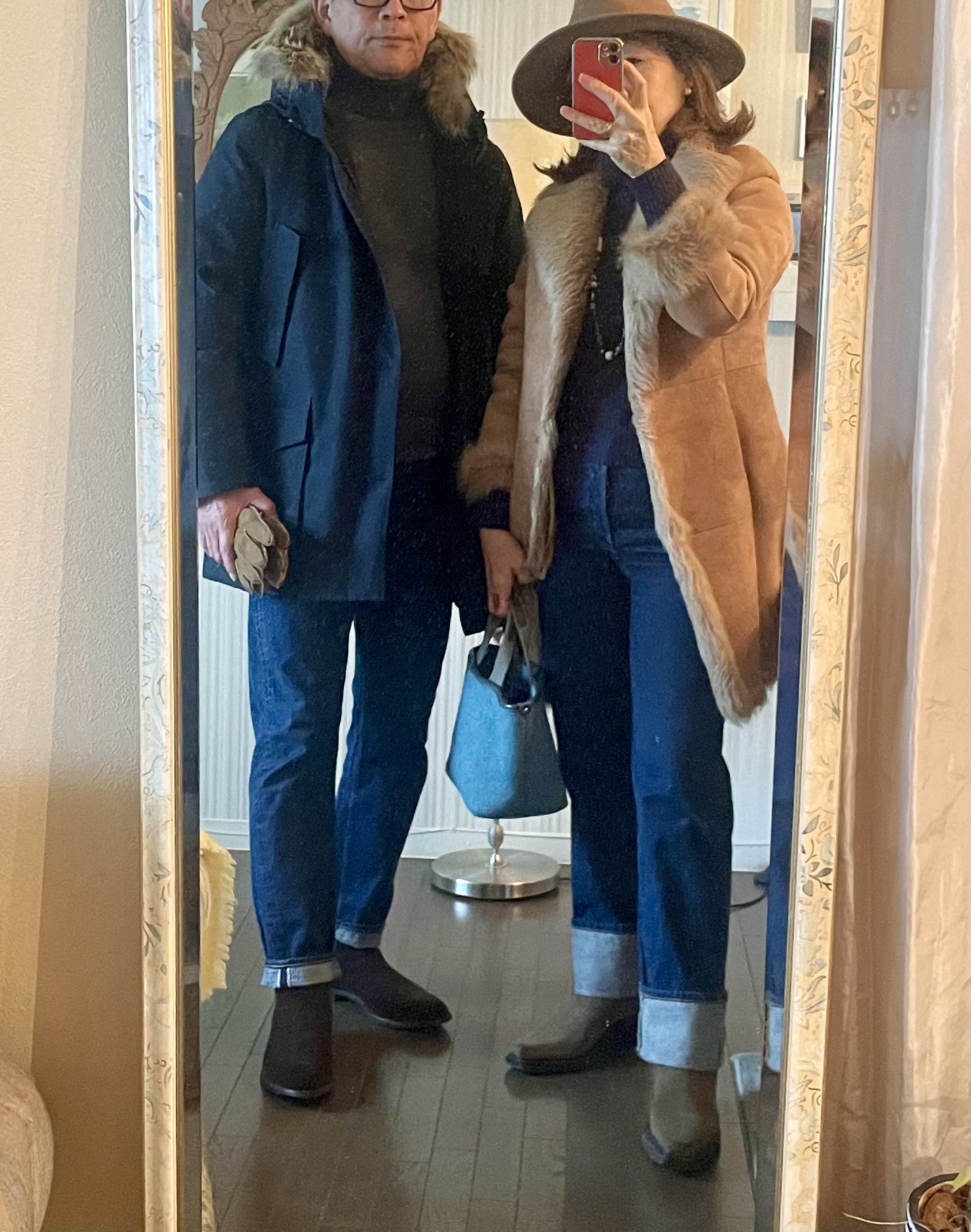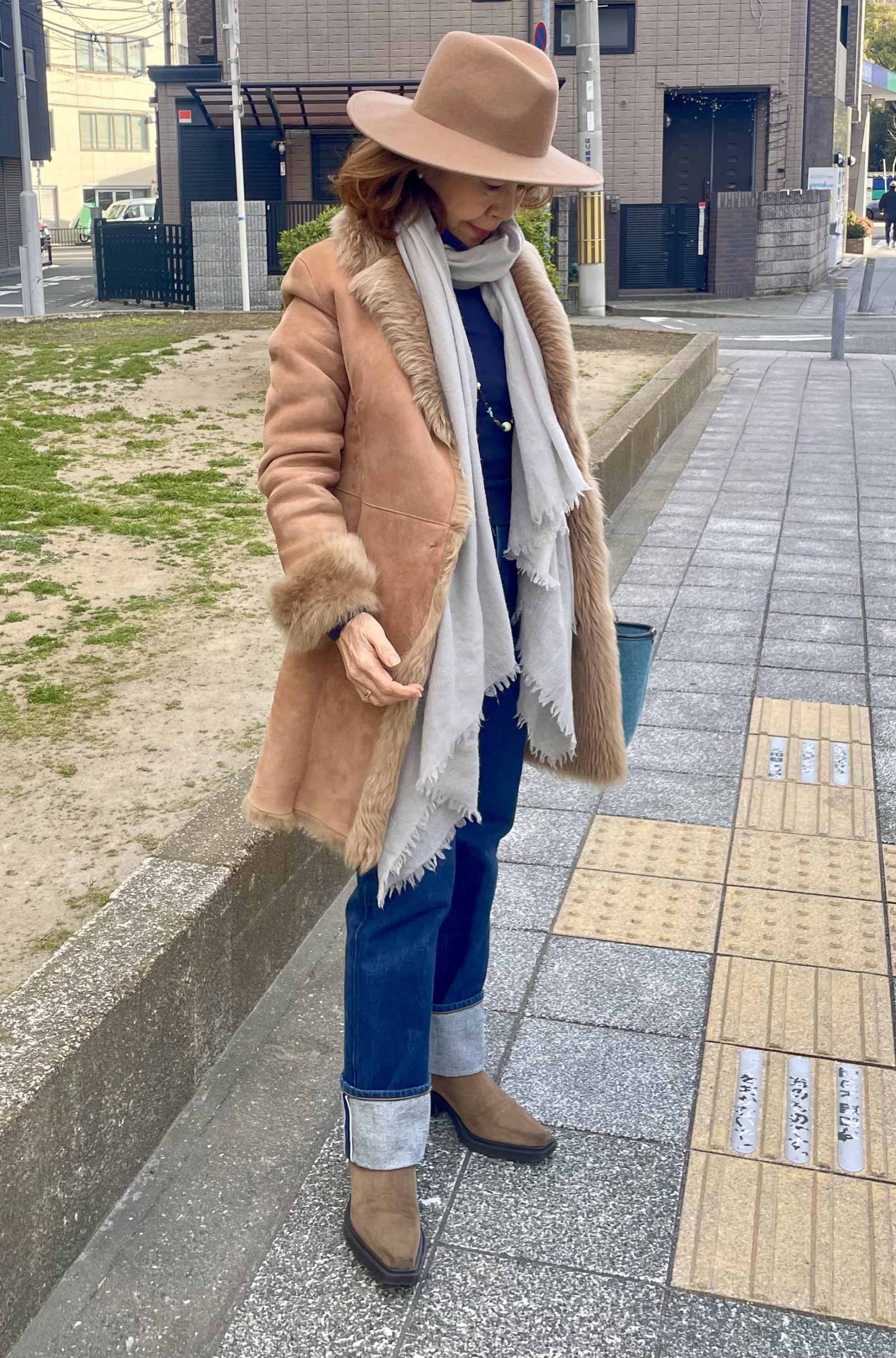 女性コーデ解説・ムートンxジーンズを上品に見せる色の使い方