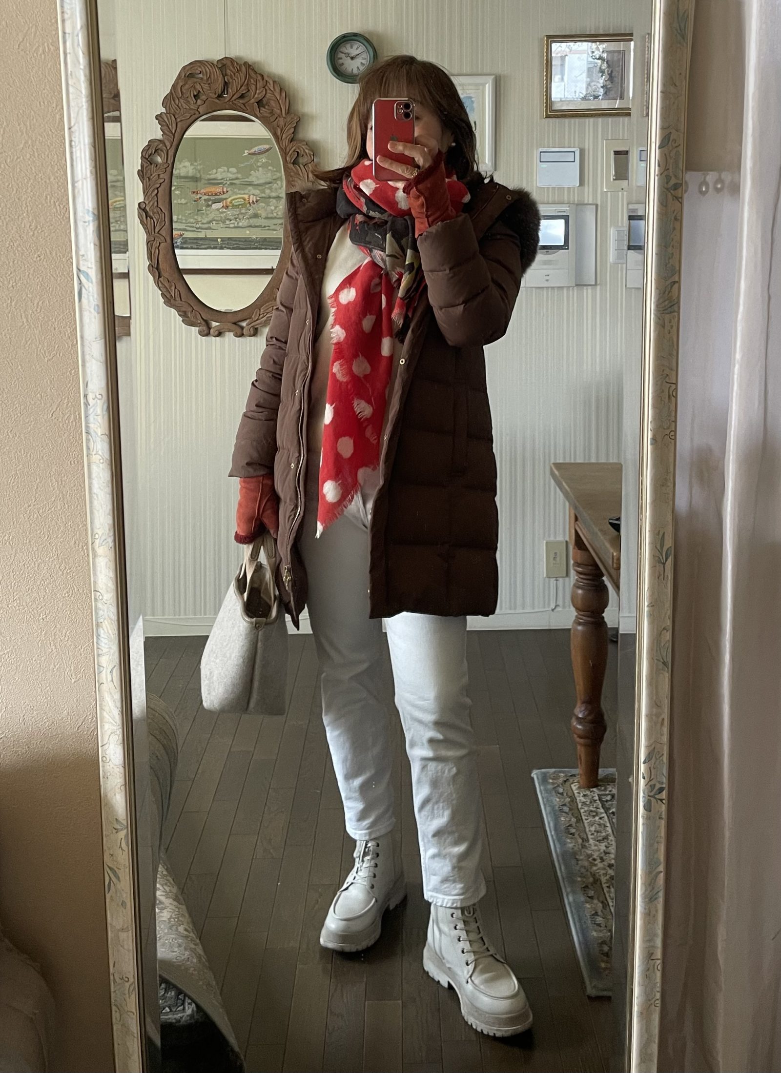 初午の日に赤をまとう・稲荷神社と赤いストールで整える60代コーデ