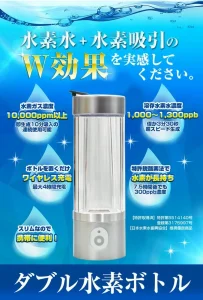 さて、さらに、このボトルで水素水も生成できます。このお水素水は、肝臓や腸に良いみたいです。