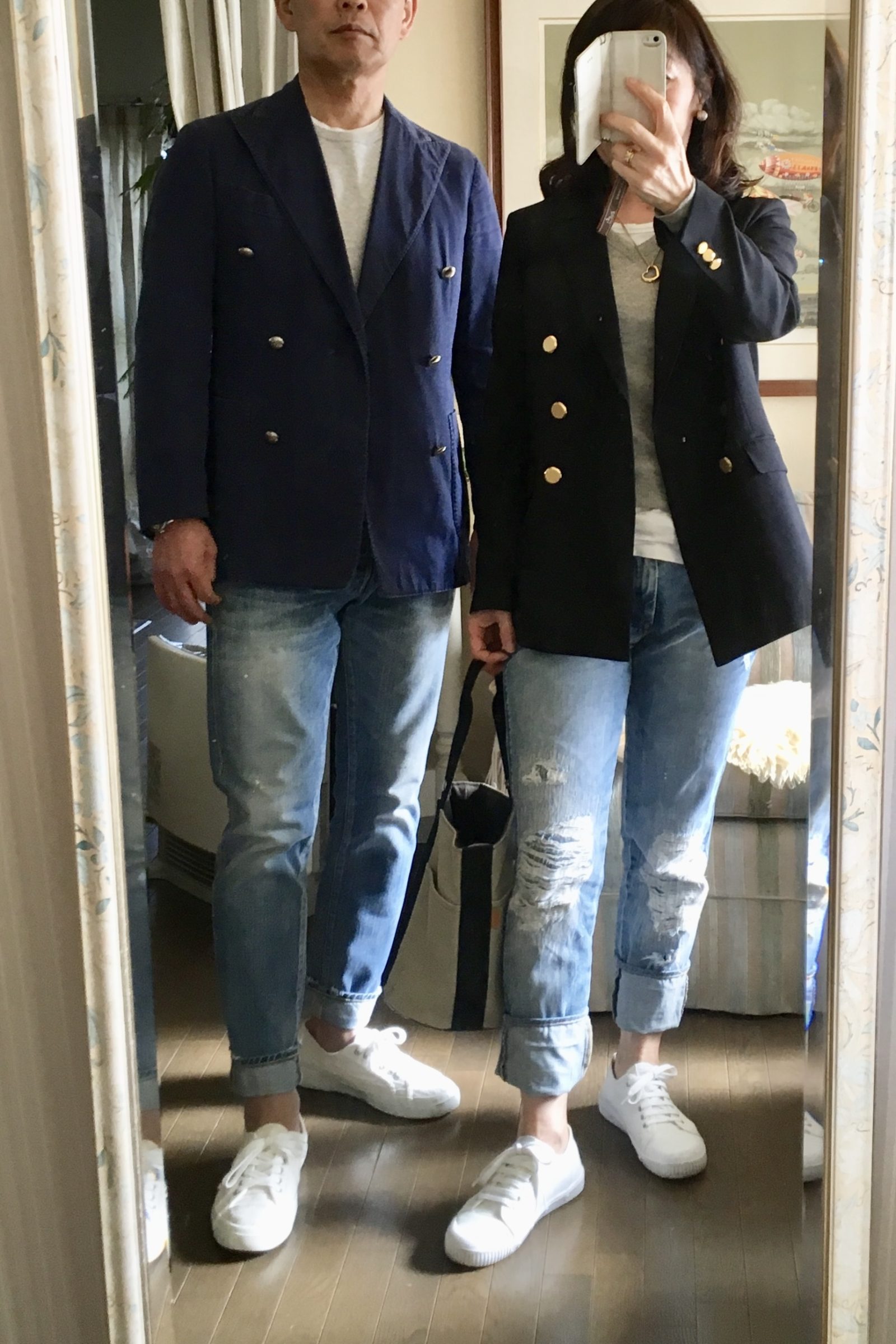 60代夫婦のネイビーコーデ/ 紺ブレ×ジーンズで若々しく見せる着こなし術